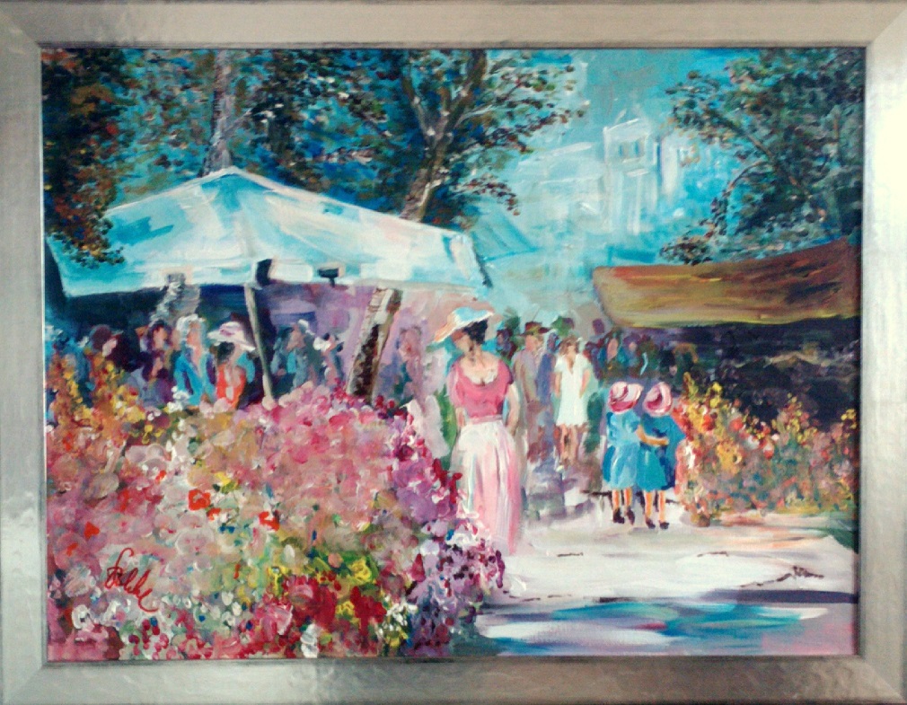 A003 - Bloemenmarkt (afm. 70x50), Acryl | Verkocht