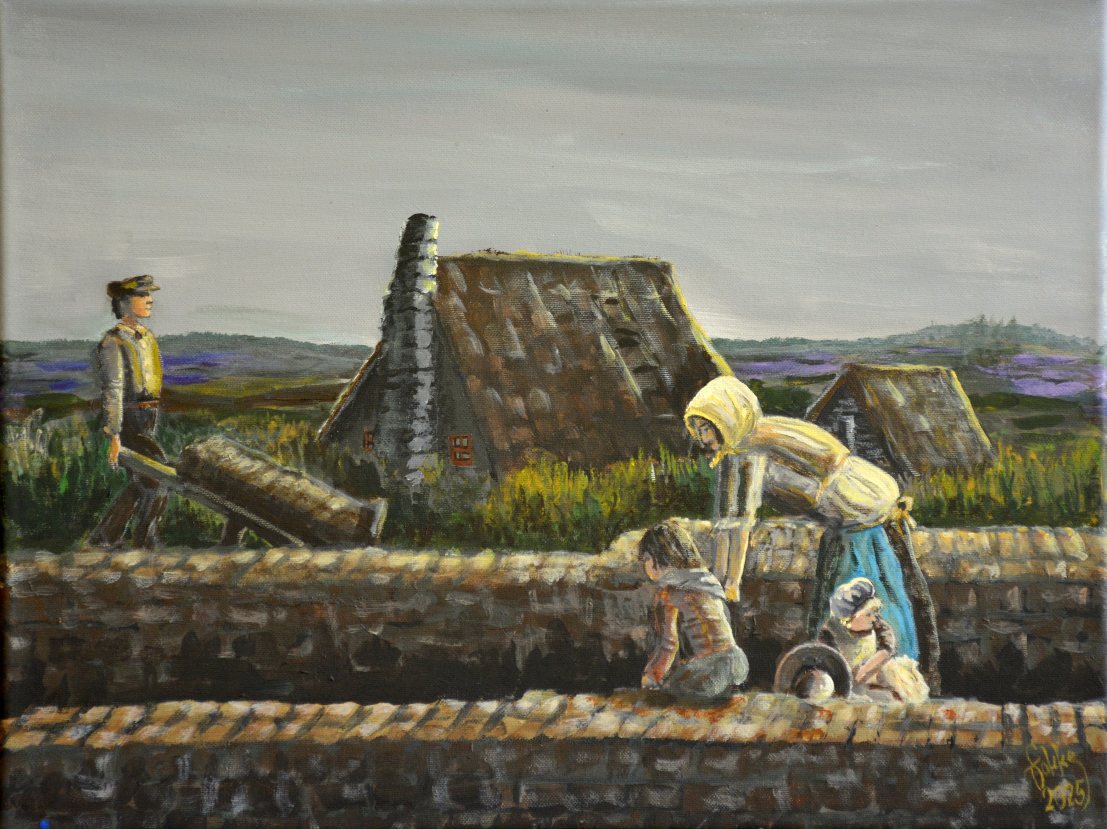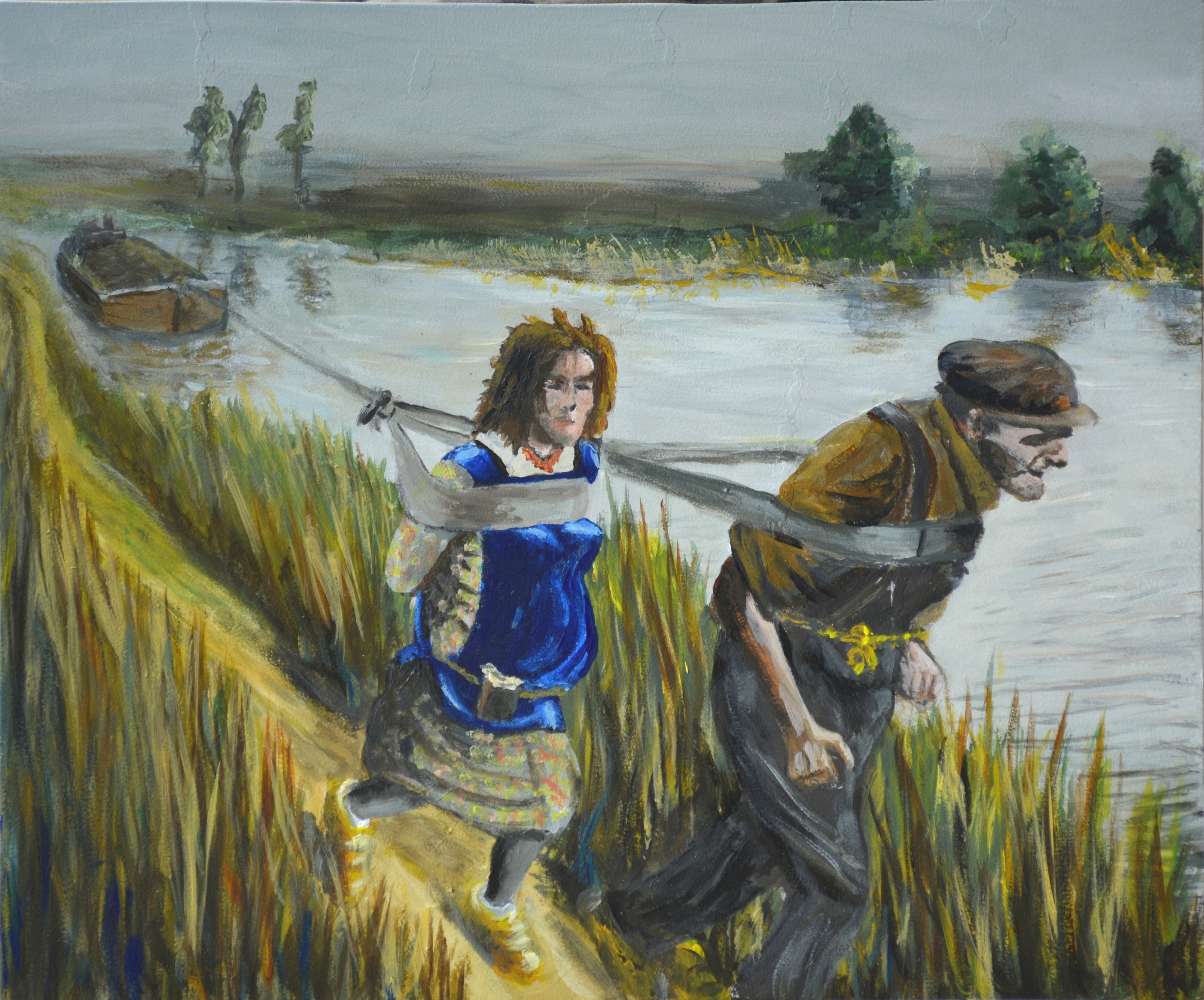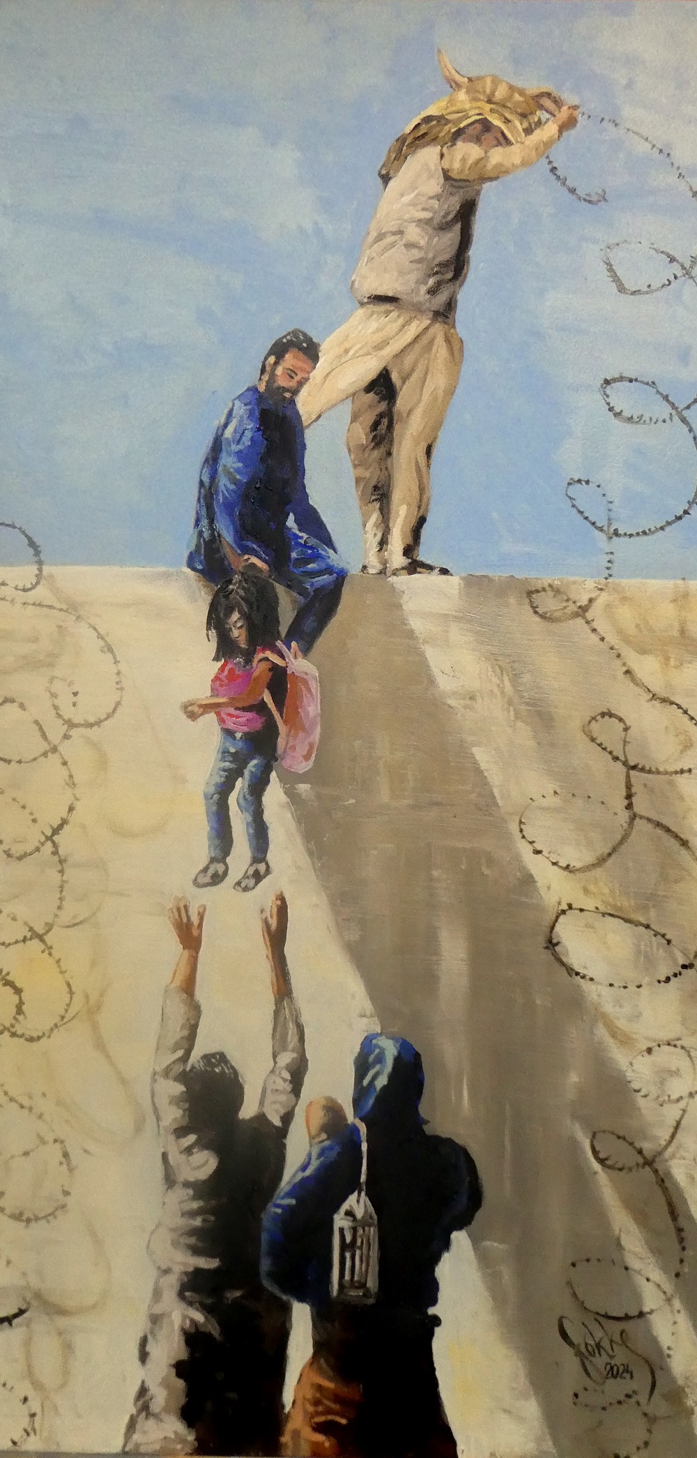A009 - Vluchtelingen (afm. 30x60), Olieverf | Te koop