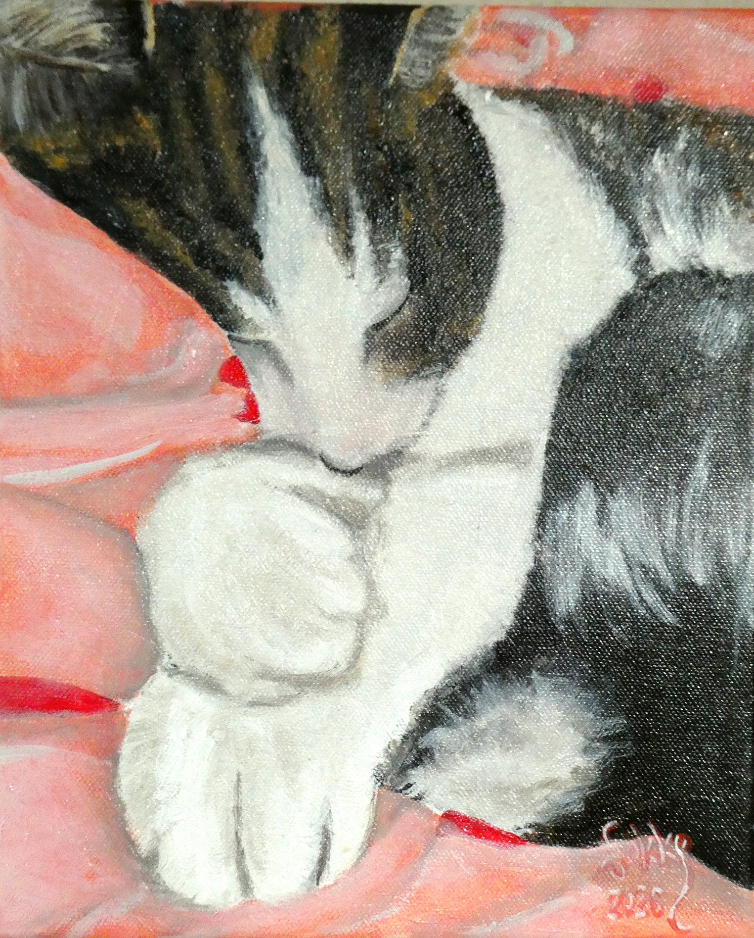 B021 - Poes (afm.18x24), Olieverf | ontvreemd