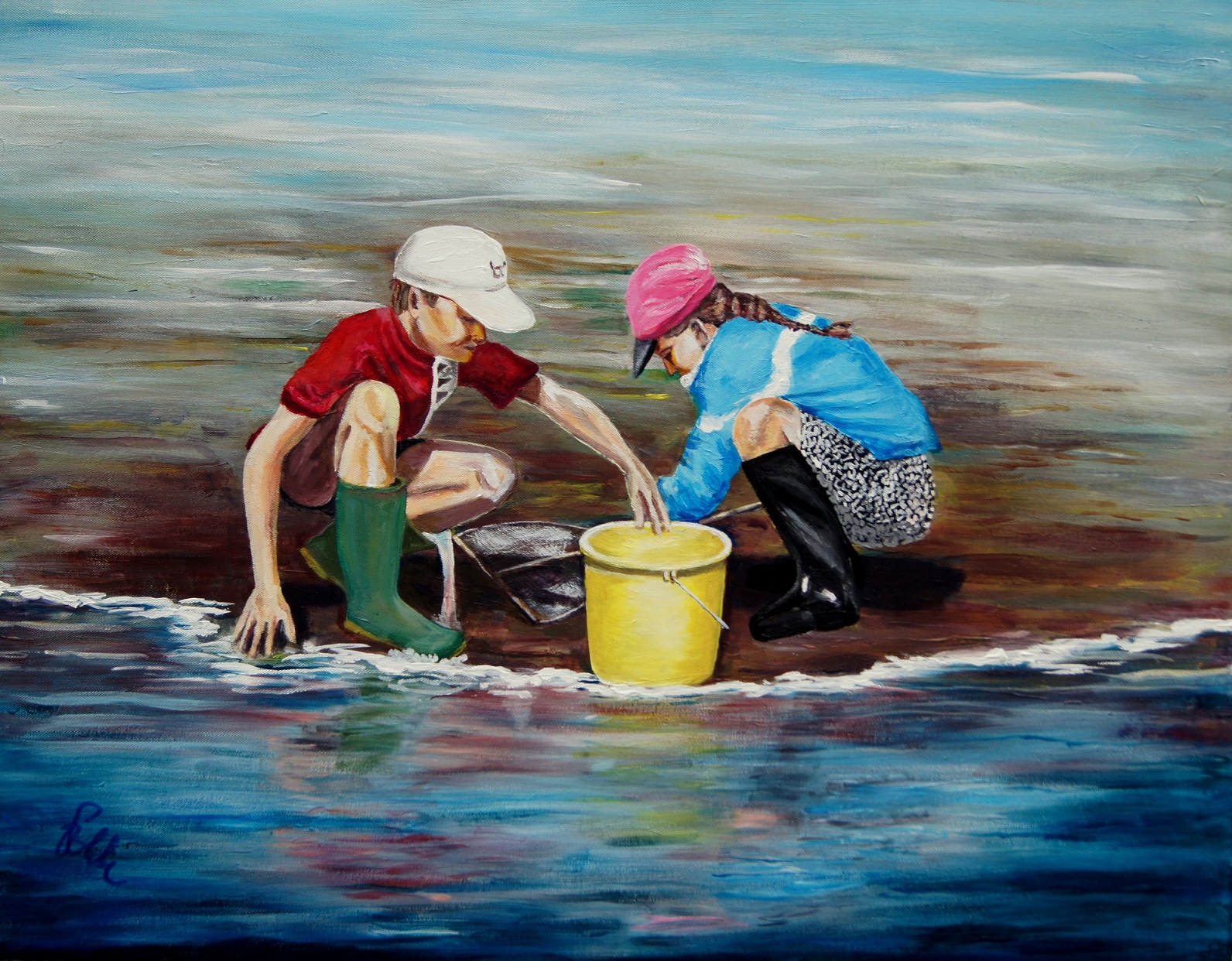 D008 - Garnalenvissers (afm. 90x70), Acryl | Eigen collectie