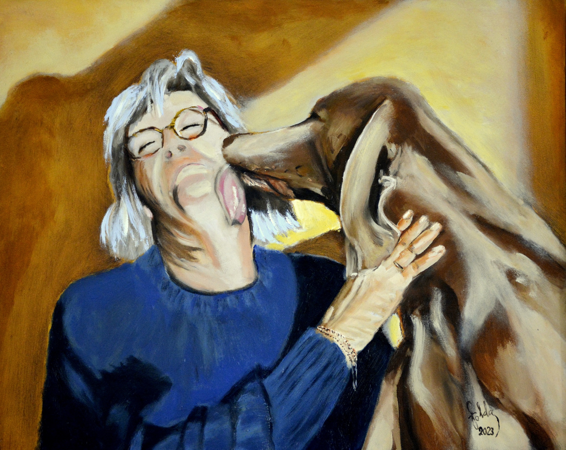 D025 -Opa Been en Nora (afm. 60x50 cm) Olieverf | Opdracht