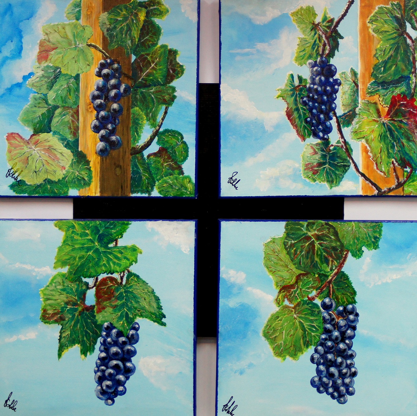E001 - Druiven (4-luik) (afm. 85x85), Acryl | Te koop