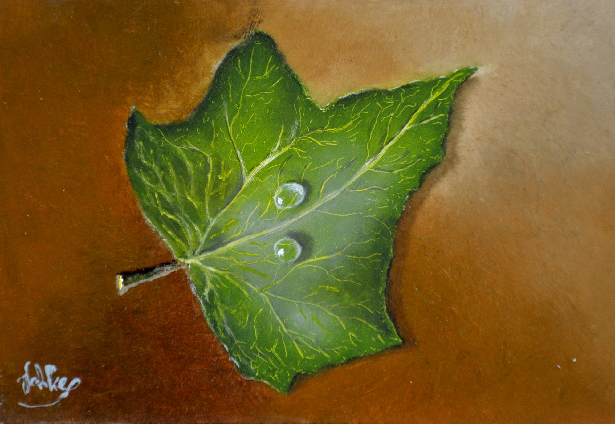 E012 - blad (afm. 15x10), olieverf | Te koop