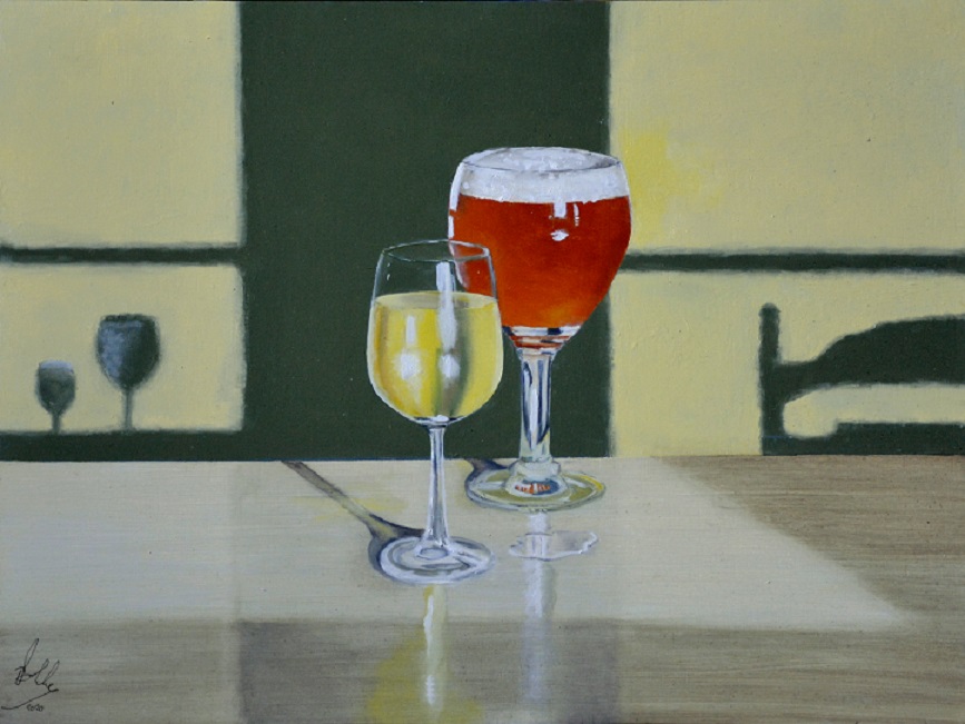 E017 - Bier & Wijn (afm. 30x40), olieverf | Te koop