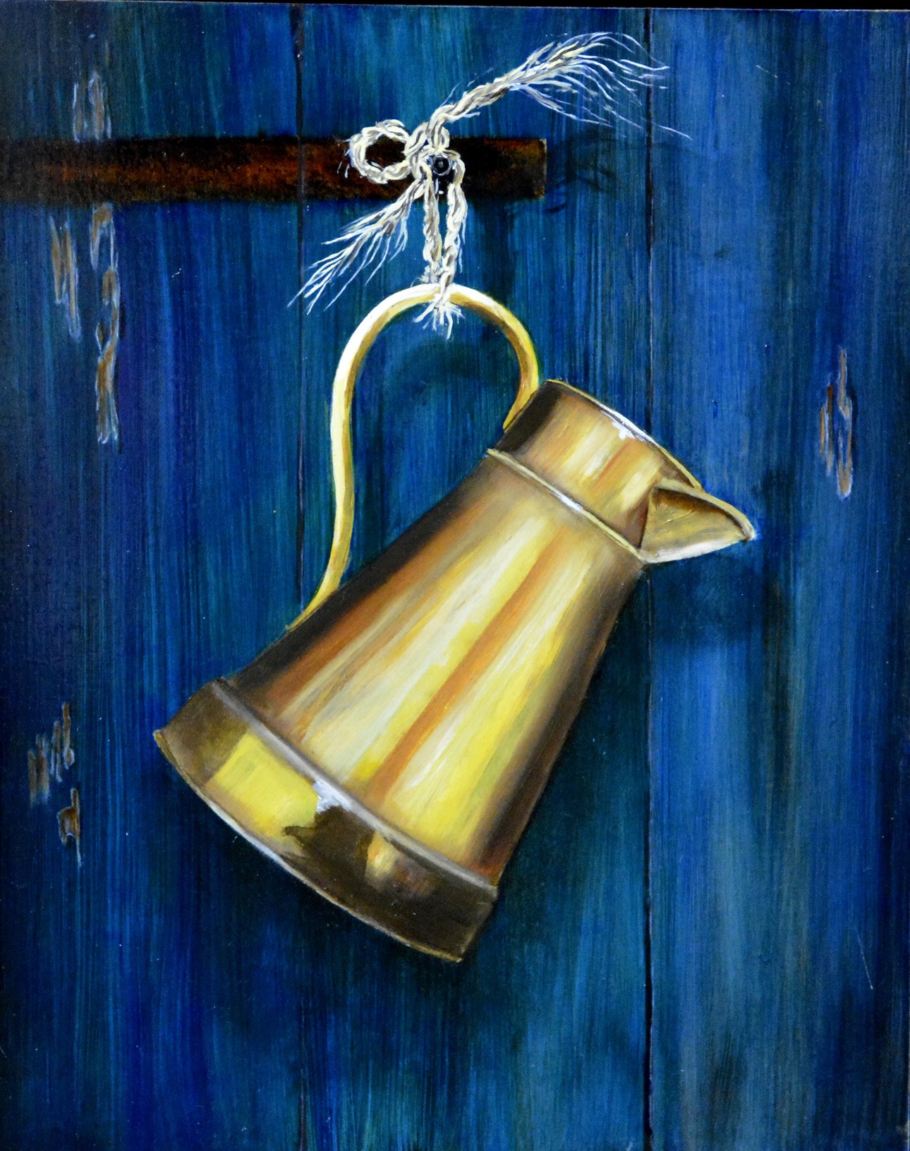 E018 -Koperen kan (afm. 24x30), olieverf | Te koop