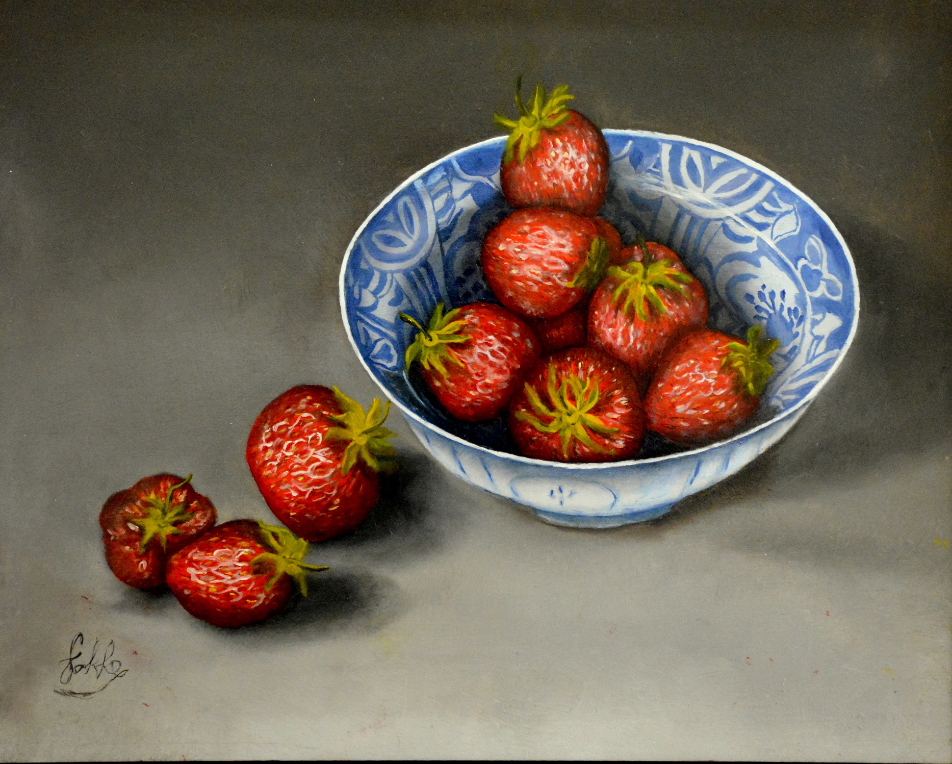 E019 - Aardbeien (afm. 30x24), olieverf | Verkocht