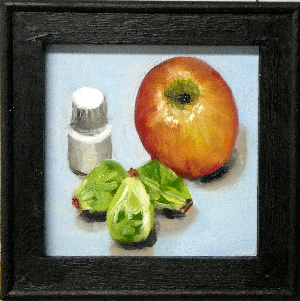 E024 -Appel en spruitjes (afm. 15 x 15),olieverf | Te koop